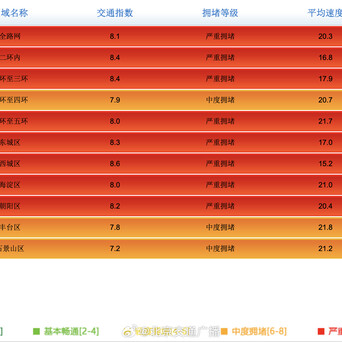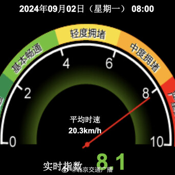 【出行注意!北京开学首日已达严重拥堵】今天是9月2日,北京中小学迎来2024年秋季新学期。受通勤、通学出行需求叠加影响,早高峰交通压力突出。截至9月2日8:00-8:05, 全网交通指数为8.1,已达严重拥堵,平均速度为20.3公里/时。